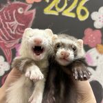 | 特徴&性格 | おめめ周りの茶色のくまどり模様が特徴のバタースコッチくん! お口周りにムニッと付いたお肉とキラキラきゅるるんおめめが とっても可愛いくまどりくっきりの男の子です( *´艸`) マウンテンビューらしいおっとりした優しい性格で 甘嚙みじゃれ嚙み上手な子なので、フェレットちゃんが 初めてという方でも抱っこがしやすい子ですよ~(∩´∀`)∩ この子が気になる方はぜひお店に会いにいらしてくださいね♪ |