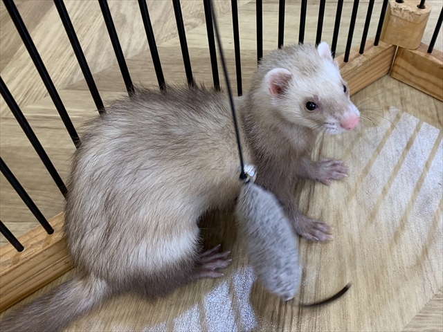 昨日、猫じゃらしでとっても楽しそうに遊んでくれたので今日はねずみ🐭の猫じゃらしを用意してみると。。。