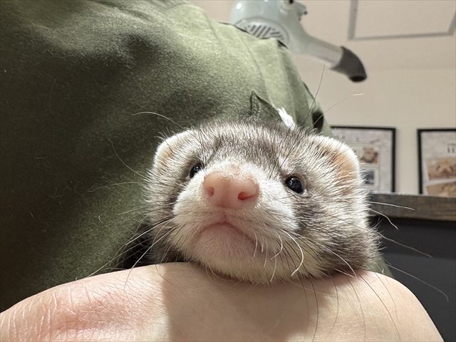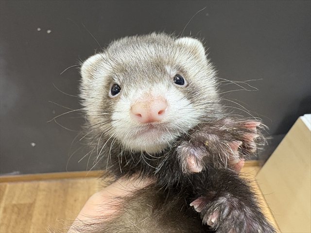 | 特徴&性格 | おめめ周りの黒いくまどり模様が特徴のセーブルくん! まん丸のお顔とまろ眉が可愛い男の子です( *´艸`) 背中周りの毛が長めなセミロングの子なので、おとなになって冬毛が 生えてきた際ふわふわもこもこ感が更に増してとっても可愛いですよ(≧▽≦) ちょっぴりビビりちゃんで抱っこをする際グッと体に力が入る子ですが 甘嚙みじゃれ嚙み上手なのですぐに仲良くなれる子だと思います☆彡 この子が気になる方はぜひお店に会いにいらしてくださいね(*^▽^*) |