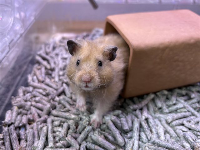 | 特徴&性格 | くるくるの巻き毛とおヒゲが特徴のシリアンハムスターくん! 全体的にこんがりきつね色で、毛先にほんのり黒っぽいお色が 混ざっているおしゃれカラーの男の子です(*^▽^*) まだあまり人に慣れていないのでおっかなびっくりではありますが ケージを開けるとゆっくり少しずつ近寄ってきてくれます( *´艸`) とっても珍しい種類のハムスターちゃんなので、 この子が気になる方はぜひお店に会いにいらしてくださいね♬ |