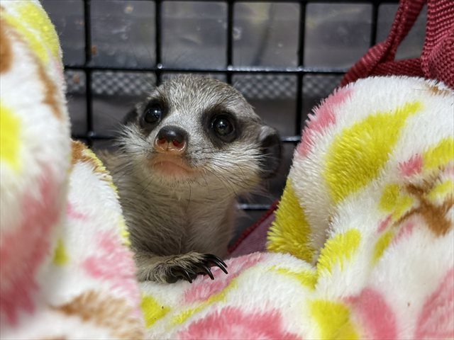 | 特徴&性格 | 約1年半ぶりに仲間入りしてくれたミーアキャットの赤ちゃん! お鼻が上下半分で黒色とピンク色に分かれています(*^▽^*) お店に来た時は余裕で片手にちょこんと乗せられるサイズでしたが 少しずつ大きくなってきて、抱っこする時の安心感が増してきました☆彡 ミーアキャットちゃんは通常群れで生活をする生き物なので 寂しがり屋さんで常に誰かと一緒にいたい‼という子たちが多い為、 多頭飼いをすることに適しています( *´艸`) ミーアキャットちゃんの多頭飼いはもちろん、性格によってわんちゃんや フェレットちゃんとの同居もできますよ~(≧▽≦) この子が気になる方はぜひお店に会いにいらしてくださいね♪ |