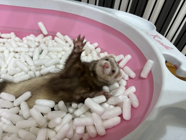 本日お泊り中のフェレットちゃんの様子を