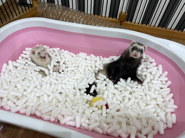 本日お泊り中のフェレットちゃんの様子を