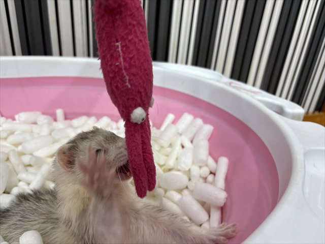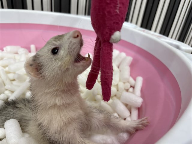 本日お泊り中のフェレットちゃんの様子を
