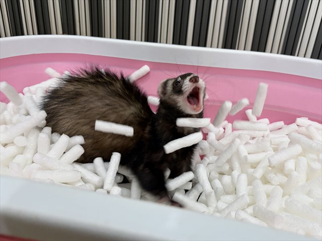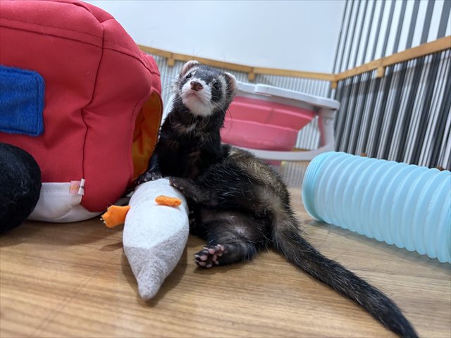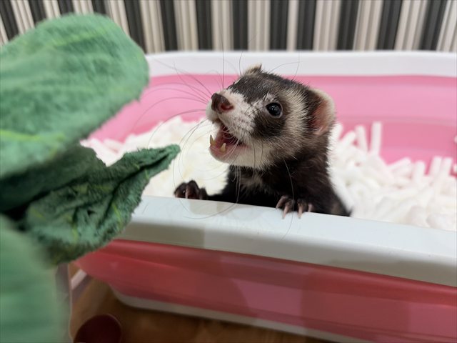 本日お泊り中のフェレットちゃんの様子を