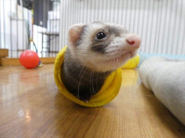 本日お泊り中のフェレットちゃんの様子を