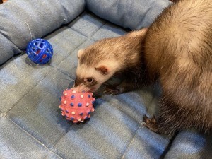 デコボールをくんくん。 かぷっと咥えて運んでいきました。