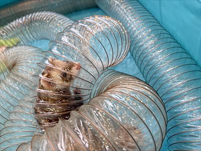 ビニールと針金の噛み心地が気に入ったのか、あっち行ったりこっち行ったりしながら、各トンネルの出入り口をカミカミ(。-`ω-)