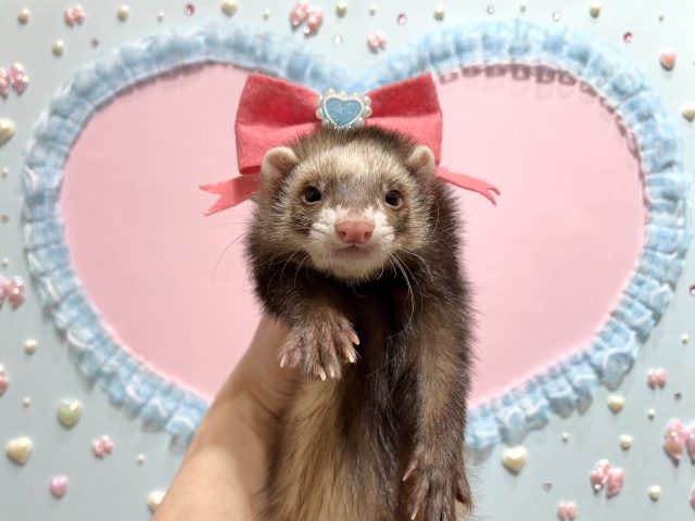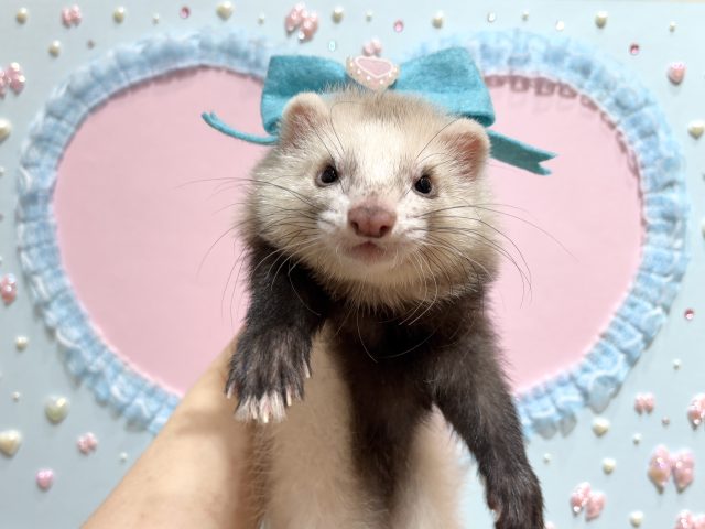 リボンのコスプレは2色ご用意したのでお好きな色、お家のフェレットちゃんに似合う色を選んでくださいね♪