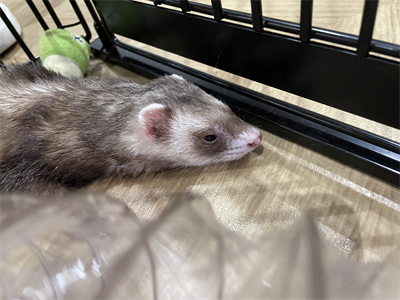 ケージを覗いてみると、らんちゃんがパッチリお目目でご挨拶🎶